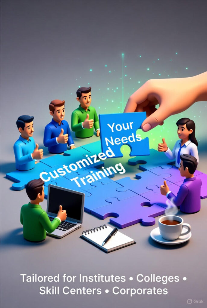 I design and deliver customized training modules for institutes, colleges, skill centers, and corporate teams based on their specific needs.