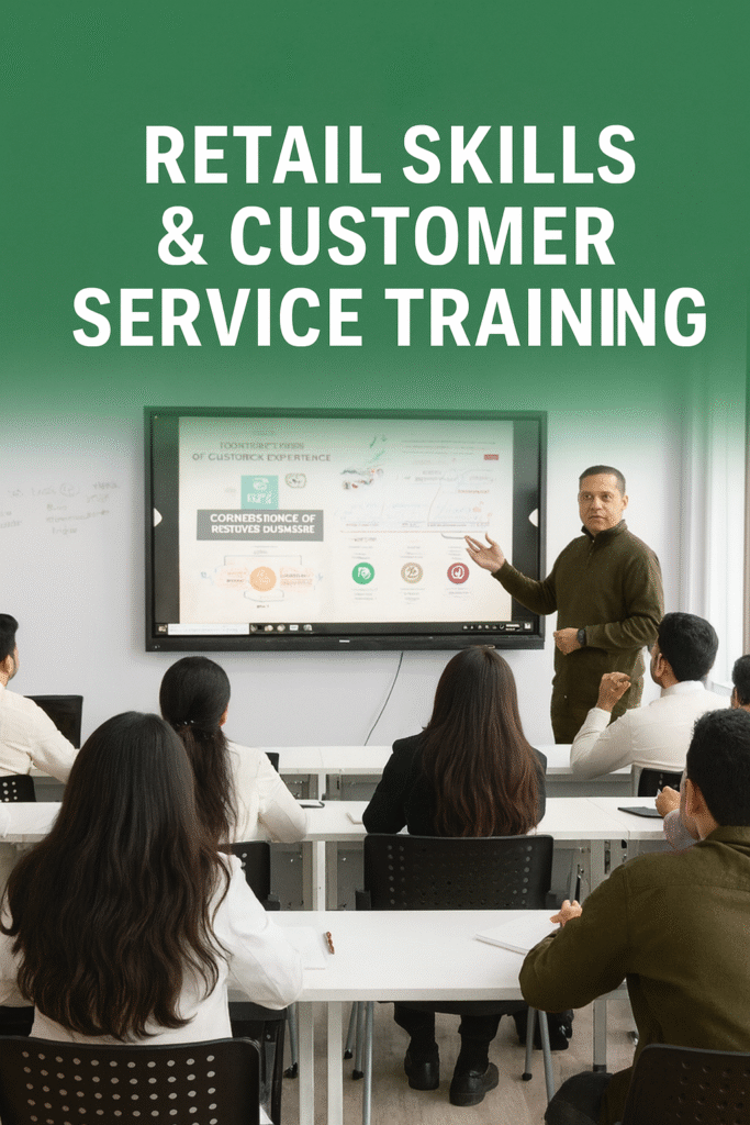 I train learners in retail operations, sales techniques, store management, customer handling, and workplace discipline. This training is designed for students, freshers, and working professionals.I AM Giving the refrence image kindly generate me pick according to this prompt